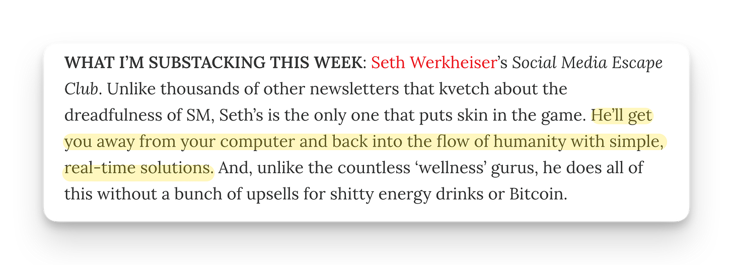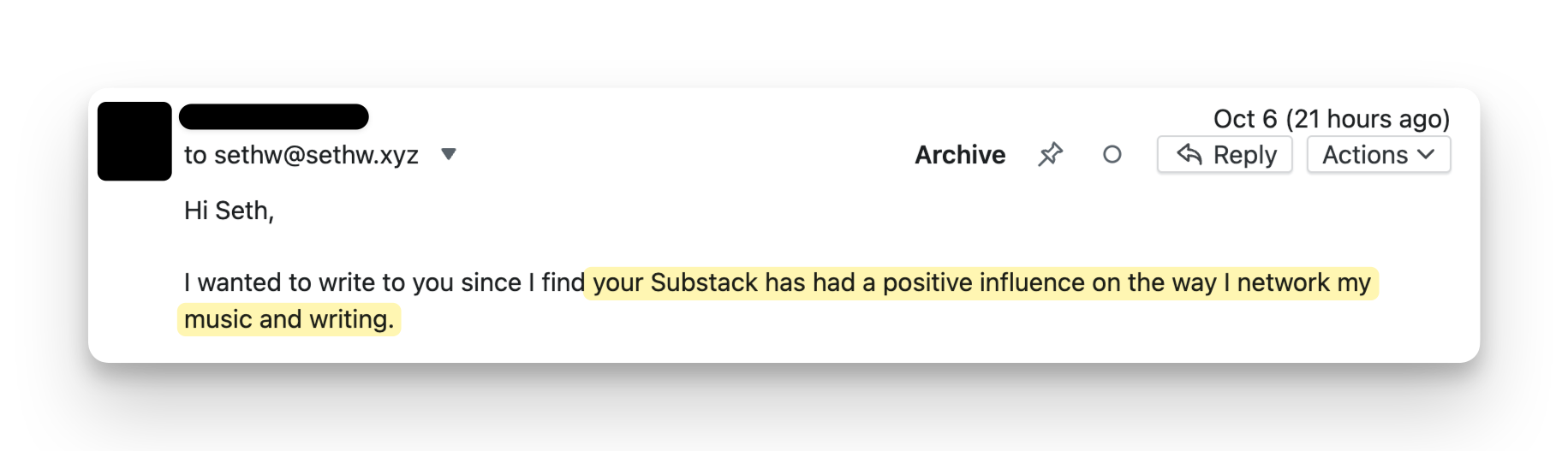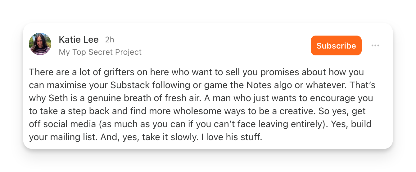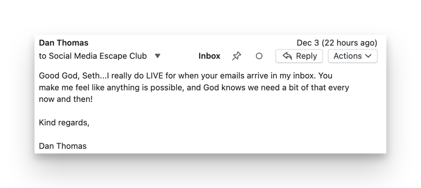One or two email newsletters per week with advice, strategies, and hope for bolstering your work without social media.