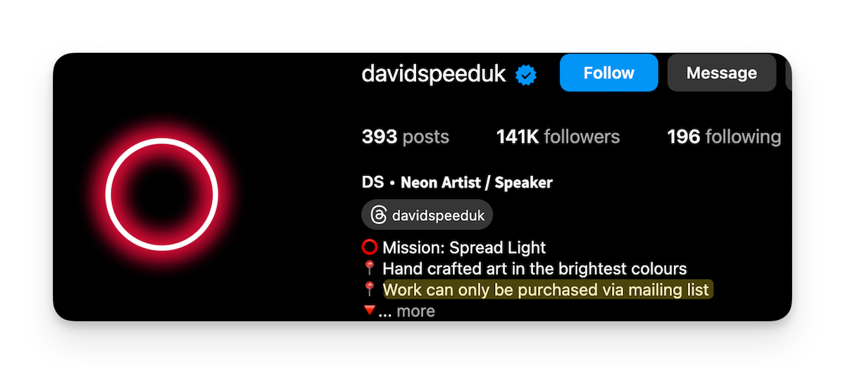 Artist David Speed’s work is only available for purchase via his email list.