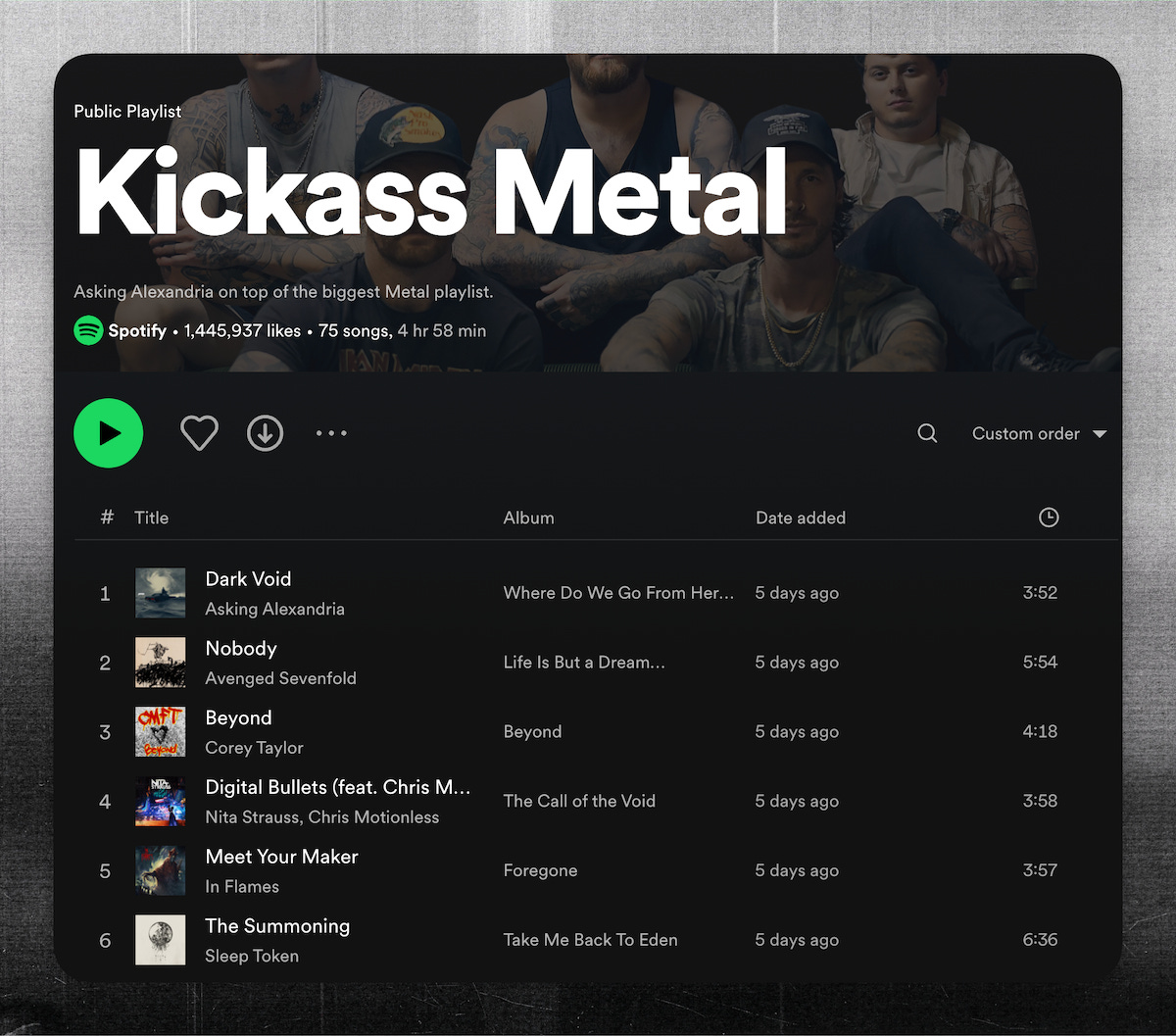 This is great for Asking Alexandria, Avenged Sevenfold, Corey Taylor, Nita Strauss… but, oh wait… you’re #62 on that list? Ooops.